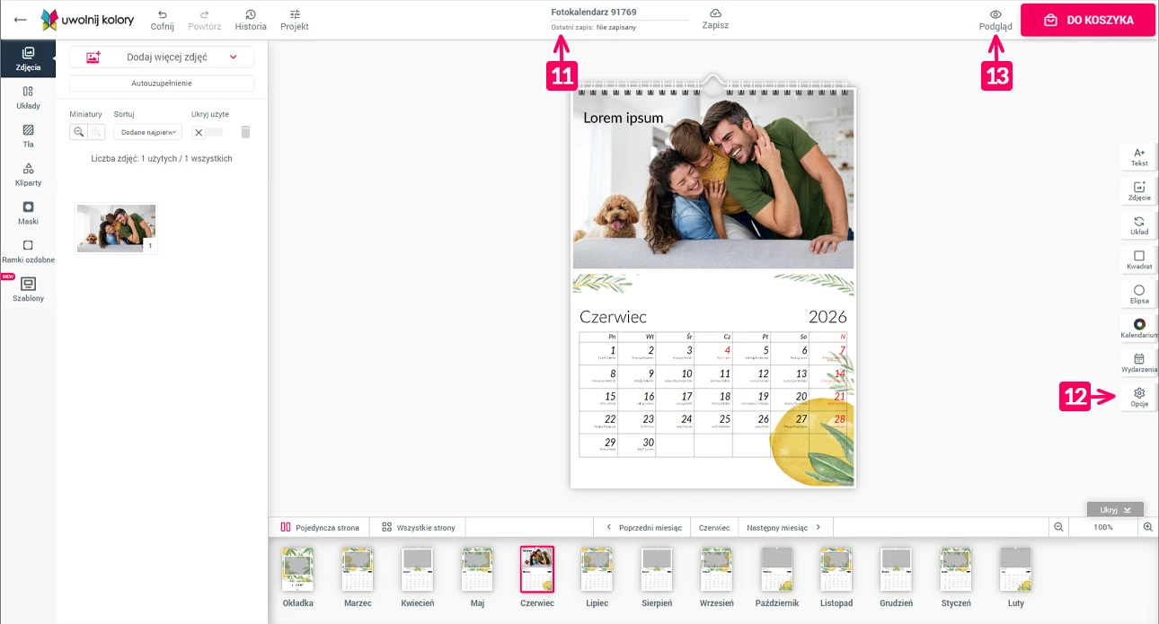 [13] PODGLĄD PROJEKTU - bardzo ważne. Koniecznie sprawdź podgląd swojego projektu, zanim złożysz zamówienie. Wydruk będzie wyglądał dokładnie tak, jak w podglądzie.