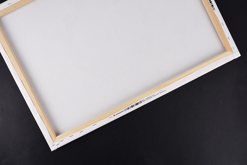 Drewniane kliny są już mniej oczywiste. Służą do naciągania i lepszego napięcia płótna na drewnianym blejtramie. Ale nie zakładaj ich od razu. My odpowiednio mocno naciągnęliśmy płótno i długo po zawieszeniu obrazu na pewno będzie wyglądał pięknie. Ale jeśli obraz będzie wisiał w suchym otoczeniu, o małej wilgotności, drewniany blejtram może się nieco skurczyć, wtedy płótno straci naprężenie. W takiej właśnie chwili załączone kliny będą lekarstwem. Włóż je po dwa w każdym rogu obrazu - tak jak pokazujemy na poniższych zdjęciach. I gotowe, obraz znowu wygląda jak nowy!