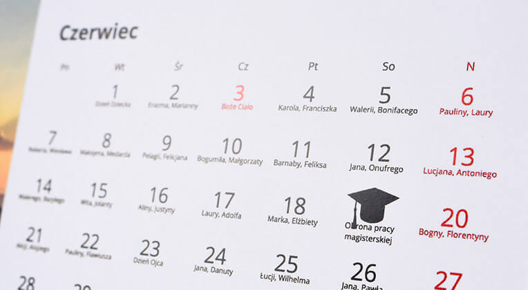 To proste. Wystarczy wybrać format kalendarza biurkowego a5, następnie zdecydować się na jeden z wielu dostępnych i darmowych szablonów, zaznaczyć miesiąc początkowy, dodać zdjęcia, oznaczyć swoje święta i ważne daty. Gotowe! Oczywiście jeśli tylko chcesz, możesz swój kalendarz biurkowy ozdobić klipartami czy innymi dodatkami. Teraz tylko dodaj go do koszyka, opłać i czekaj na odbiór!