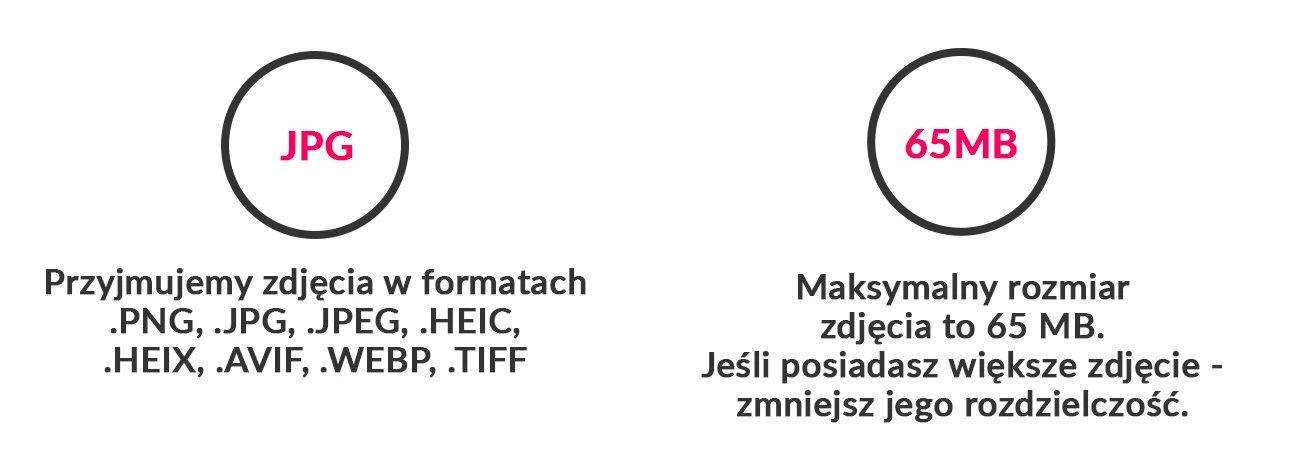 W projekcie możesz używać zdjęć z rozszerzeniem .PNG, .JPG, .JPEG, .HEIC, .HEIX, .AVIF, .WEBP, .TIFF