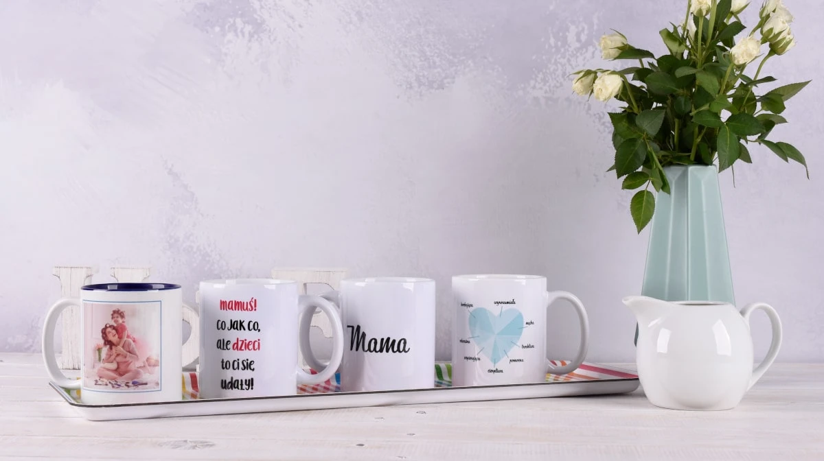 Przygotuj osobisty kubek dla mamy, wybierając perfekcyjny szablon. Wśród naszych propozycji znajdziesz kubek dla najlepszej mamy lub z napisem „Super mama”, który świetnie podkreśli zamieszczone przez Ciebie zdjęcie.