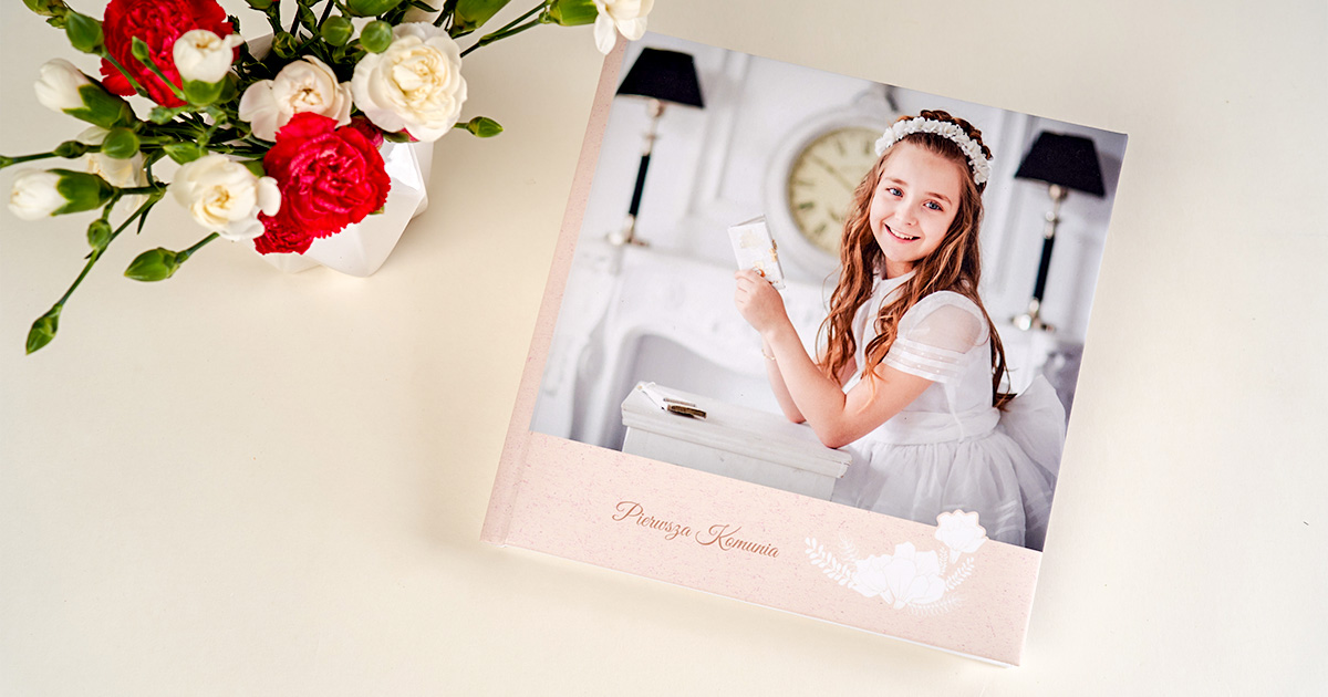 - Fotoksiążki – możesz w nich umieścić tyle zdjęć, ile chcesz. W naszej ofercie znajdziesz specjalne komunijne szablony, w których możesz dodać również życzenia. Jeśli chcesz postawić na bardziej efektowną wersję, wybierz fotoksiążkę layflat, która rozkłada się na płasko, a zdjęcia naświetlane są na papierze fotograficznym. Dobierz pudełko na fotoksiążkę i prezent gotowy do wręczenia.