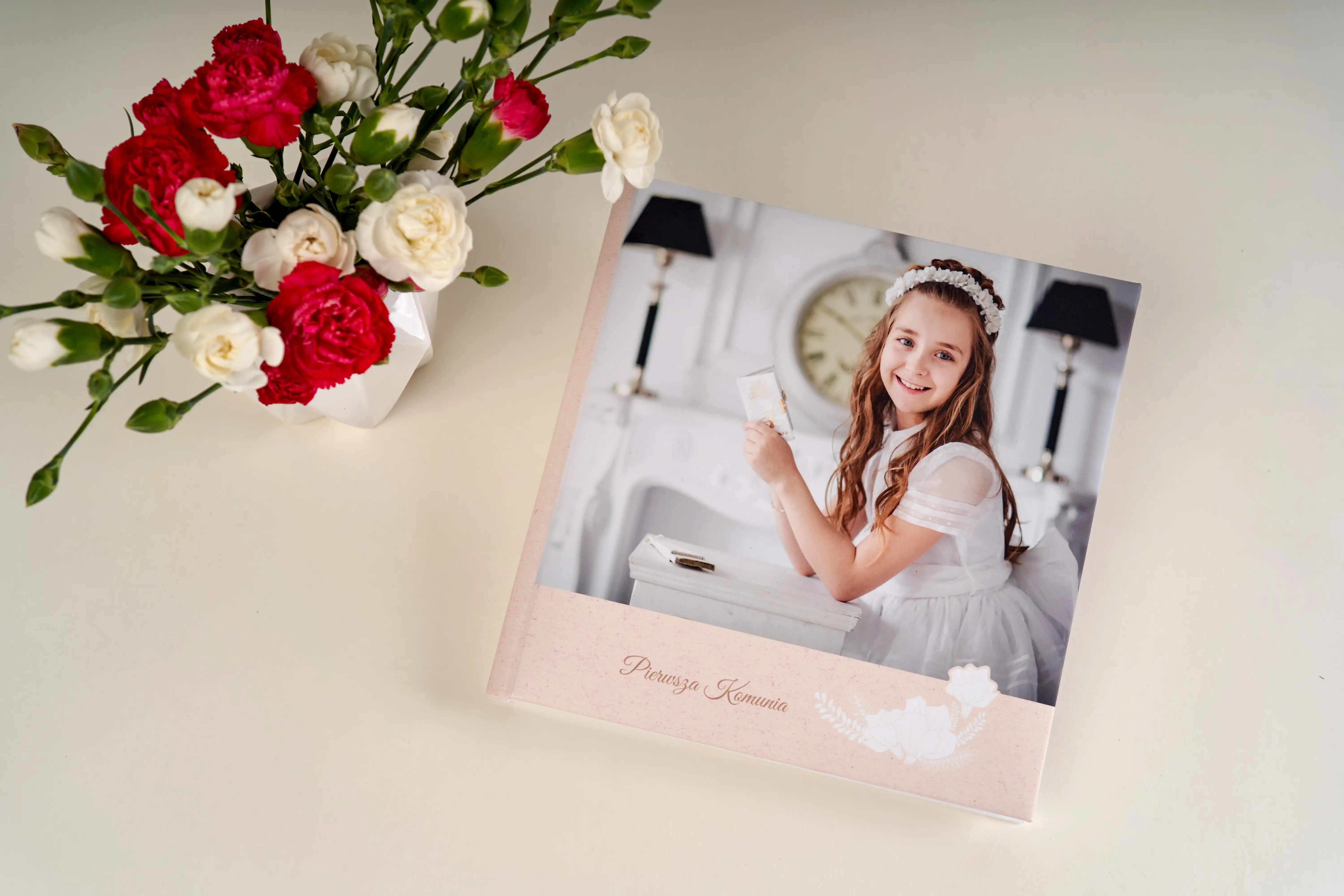 - Fotoksiążki – możesz w nich umieścić tyle zdjęć, ile chcesz. W naszej ofercie znajdziesz specjalne komunijne szablony, w których możesz dodać również życzenia. Jeśli chcesz postawić na bardziej efektowną wersję, wybierz fotoksiążkę layflat, która rozkłada się na płasko, a zdjęcia naświetlane są na papierze fotograficznym. Dobierz pudełko na fotoksiążkę i prezent gotowy do wręczenia.