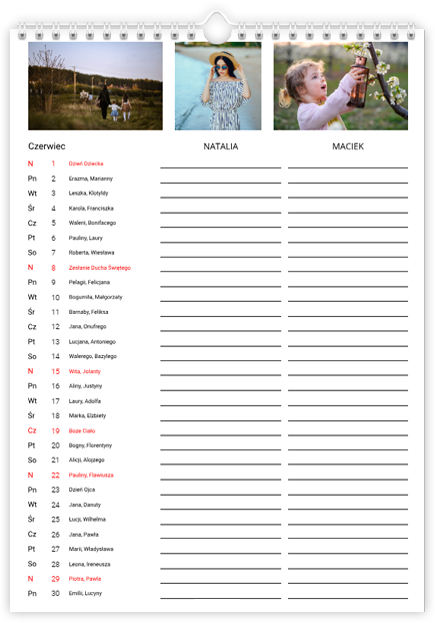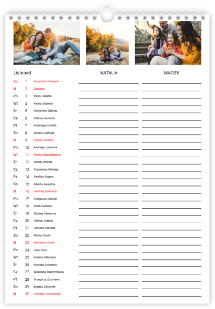 Fotokalendarz Planer miesięczny dla pary