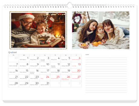 Większość kalendarzy zaczyna się, a jakże, w styczniu. Fotokalendarz 2026 na naszej stronie możesz rozpocząć od dowolnego miesiąca, a kolejne jedenaście pojawi się w nim automatycznie. To super rozwiązanie, gdy potrzebujesz kalendarza ze zdjęciami w środku roku. To też idealny pomysł na fotokalendarz szkolny, który będzie towarzyszył Ci przez cały rok nauki. W tym przypadku możesz też stworzyć fotokalendarz z szablonami dziecięcymi, bo wiadomo, że rok szkolny dotyczy głównie dzieci… i nauczycieli. Takie szablony idealnie sprawdzą się też jako prezent dla dziadków z okazji Dnia Babi i Dziadka, To przecież styczeń, czyli początek roku i czas na wymianę startego kalendarza ze zdjęciami.