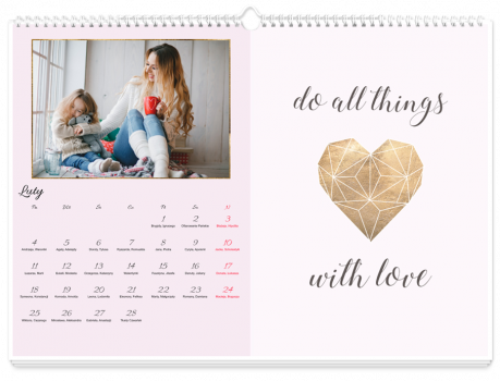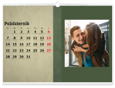 Każdy z nas ma inne preferencje i inne potrzeby. Każdy też potrzebuje, by kalendarz ze zdjęciem zawiesić lub postawić w innym miejscu. Dlatego też możesz wybrać jeden z wielu formatów fotokalendarza na kolejny rok. Zamawiając fotokalendarz na naszej stronie możesz wybrać jeden z sześciu formatów: fotokalendarz A3 poziom, fotokalendarz A3 pion, fotokalendarz A4 poziom, fotokalendarz A4 pion, fotokalendarz XL lub fotokalendarz biurkowy. Każdy z nich jest inny, ale każdy możesz tak samo personalizować, dodając do niego swoje zdjęcia, zaznaczając najważniejsze daty i święta. Dla każdego dostępnych jest też mnóstwo darmowych, uniwersalnych szablonów fotokalendarzy, wśród których z pewnością znajdziesz coś dla siebie.